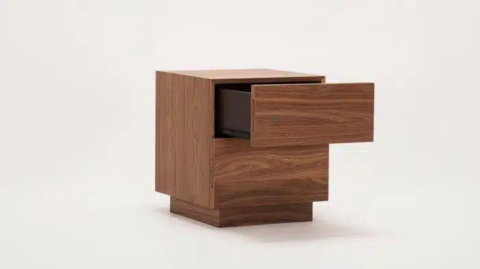 This modern 2-drawer end table encourages organization, allowing loose items to be neatly hidden away.