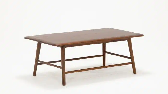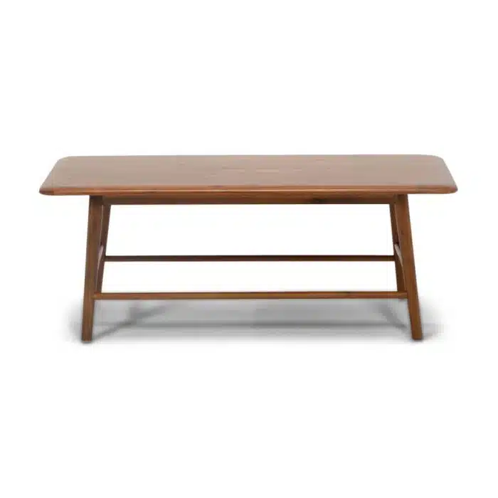 Tasteful and modest. Constructed of solid Acacia wood, the Kacia collection takes inspiration from this material. Native to Vietnam, Acacia is a durable, soft wood with a rich and complex grain. Thin lines, rounded edges and mid-century inspired styling highlight the solid wood, finished in a warm chestnut brown. Now available in three sizes, including a new rectangular shape, the Kacia Coffee Tables can work alongside the Kacia End Table to create a dynamic combination.