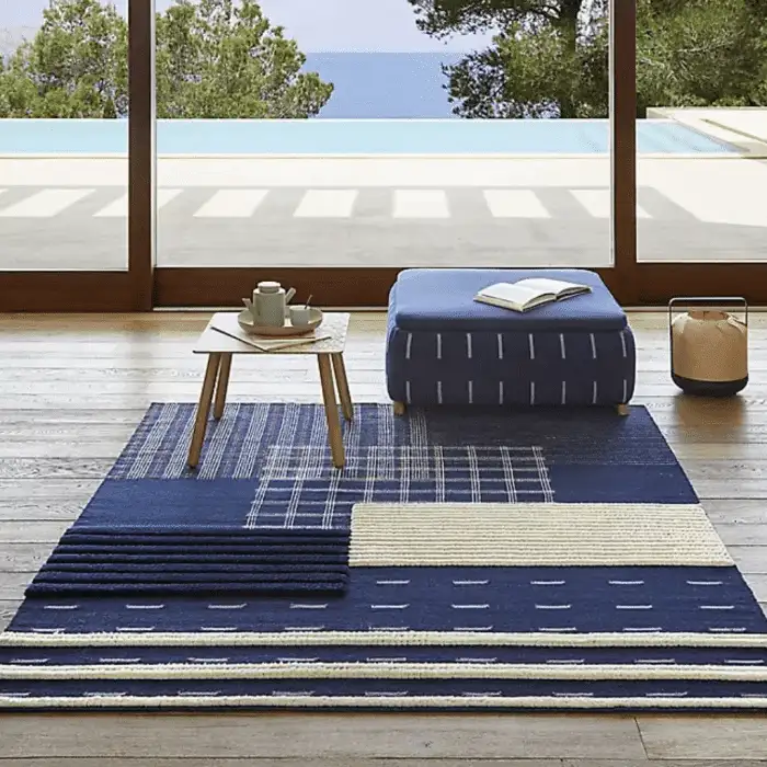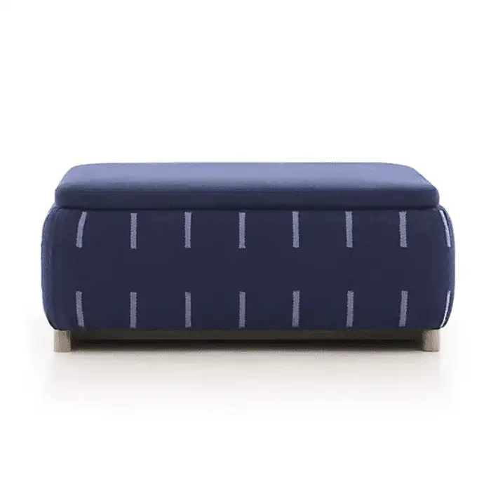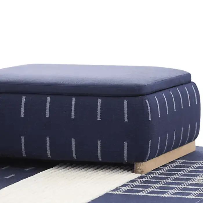 A dominant use of indigo, together with a revision of traditional oriental screens and an exercise in deconstructing the usual sofa format: those are the three main codes worked by Chinese designers Neri&Hu in developing their Lan collection -which means blue in Mandarin. A graphic proposal based on minimalist patterns, embroidered by hand on a base of Glaoui fabric.