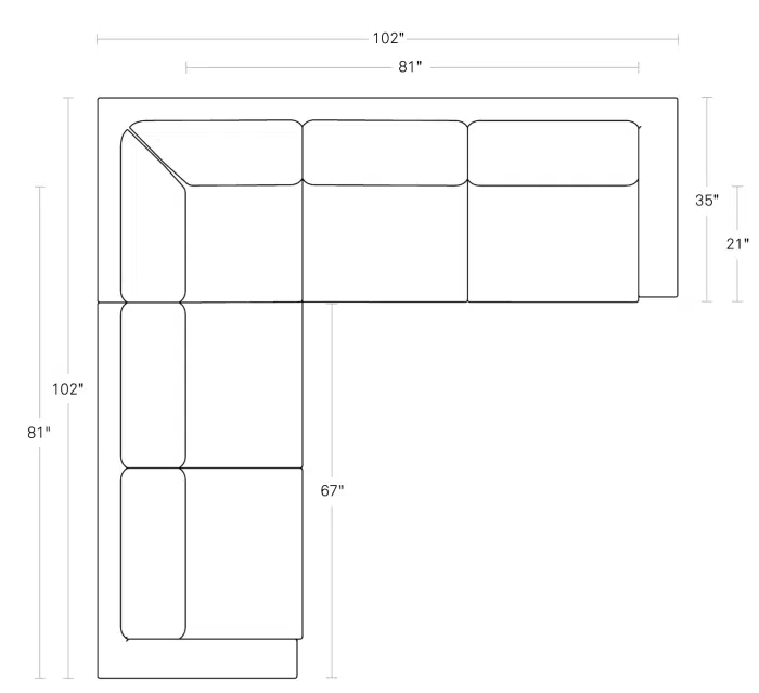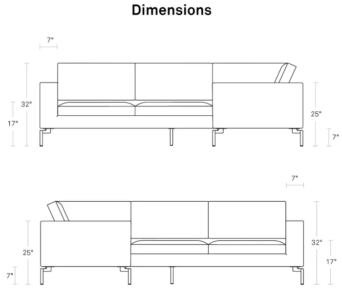 • Fifth support leg at center of Corner Sofa