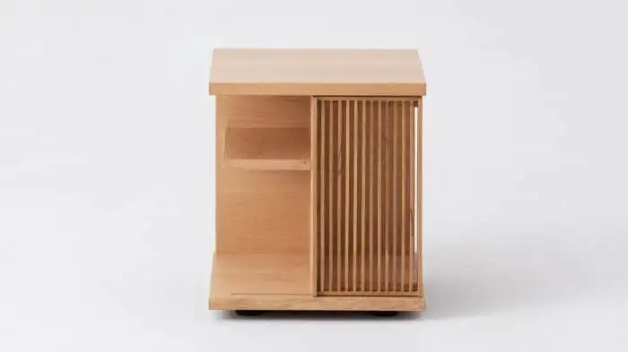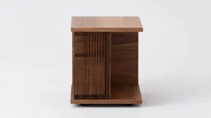 - The side table is available in oak or walnut.