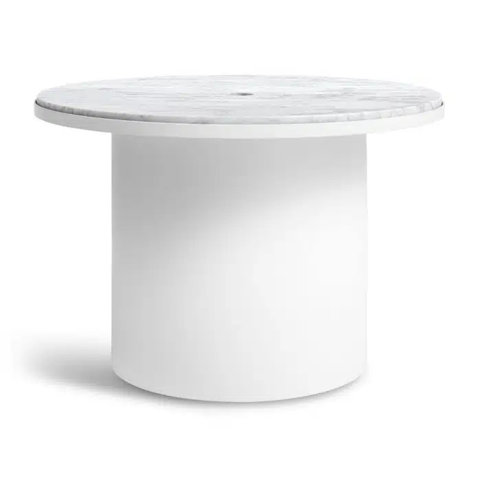 A polished wheel of Carrara marble sits on a tidy steel base for an effect that is loaded with low key elegance. Great on it’s own, but pairs nicely with the Plateau Coffee Table and Plateau Side Table.