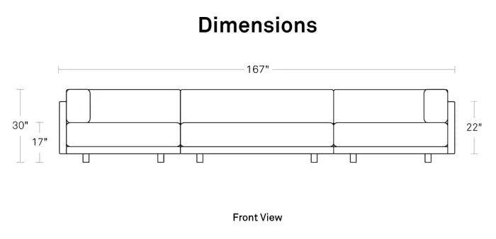 - 167″w x 76″d x 30″d