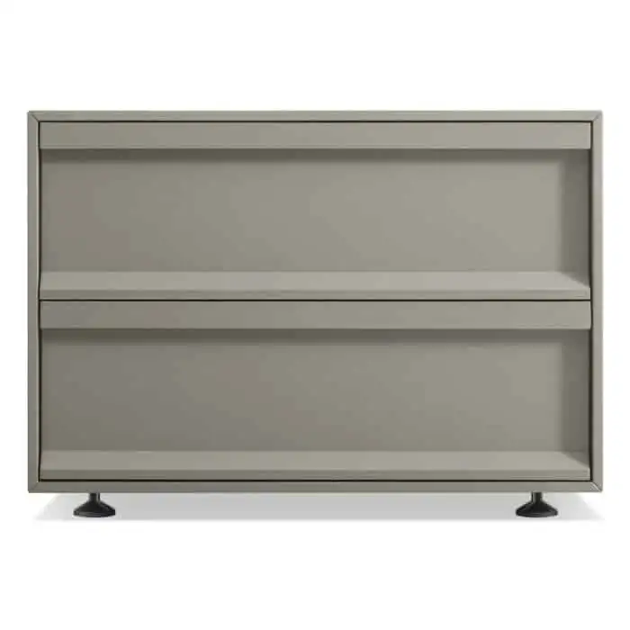 Uncomplicated storage for messy times. Beveled relief drawer pulls are set off by a matte painted finish. Soft close drawers keep the action smooth and serene.