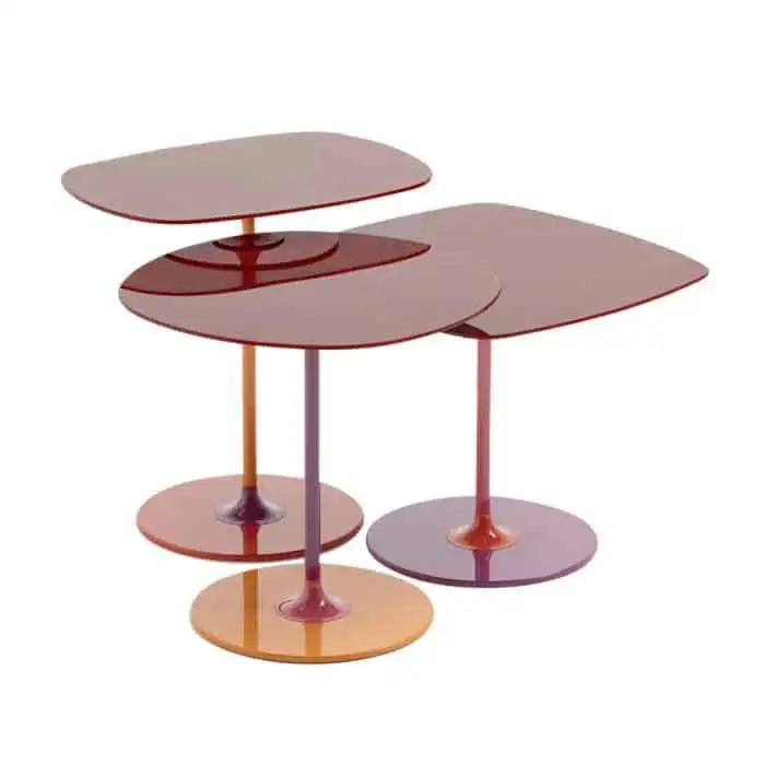 Thierry is a family of highly characteristic occasional tables that make an inspired use of colour. Each table can have 3 or 4 different colours and can be assembled in various ways. The beauty of these little tables lies in their jewel-like design.