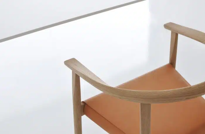 Solid wood with a removable saddle leather seat, the Tokyo chair nods to traditional Danish and Japanese designs while maintaining an active footing in the present. A continuous ribbon of shaped solid wood creates the distinctive back and connects to the legs with traditional mortise and tenon construction. The finish is an advanced low build water-based polyurethane that gives the wood a natural open-grain appearance which is both smooth to touch yet very durable. The saddle leather seat is expertly cut, sewn and applied to a multi-layered seat structure to ensure a perfect fit for many years to come.