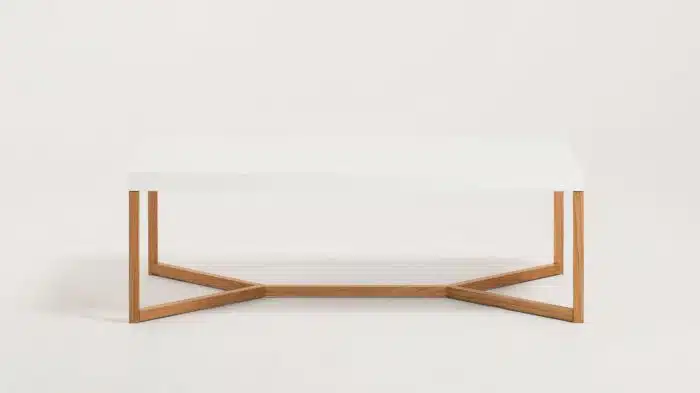 This simple yet clever marriage of solid wood and powder-coated metal come together to create a piece that is durable, functional, and modern. Available in either solid oak and white, or solid walnut and charcoal, the sturdy, clean design of this coffee table will add a touch of modern utility to your space.