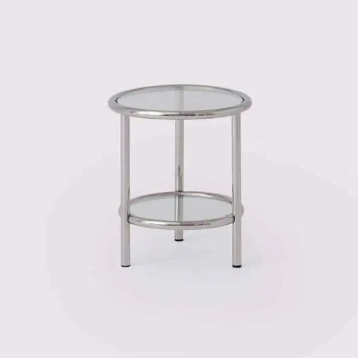 Fun, versatile, and perfect for small-space living, the Tubular tables feature steel frames with glass tabletops. The Tubular end table is available in black with grey glass or stainless steel with clear glass.