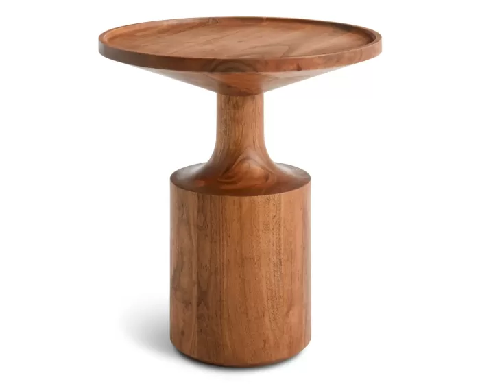 Solid acacia wood tables. Heavy yet light, mobile yet stationary. Perfect perch for laptops, cocktails, art books, flowers, feet and of course bowls of Cheetos.